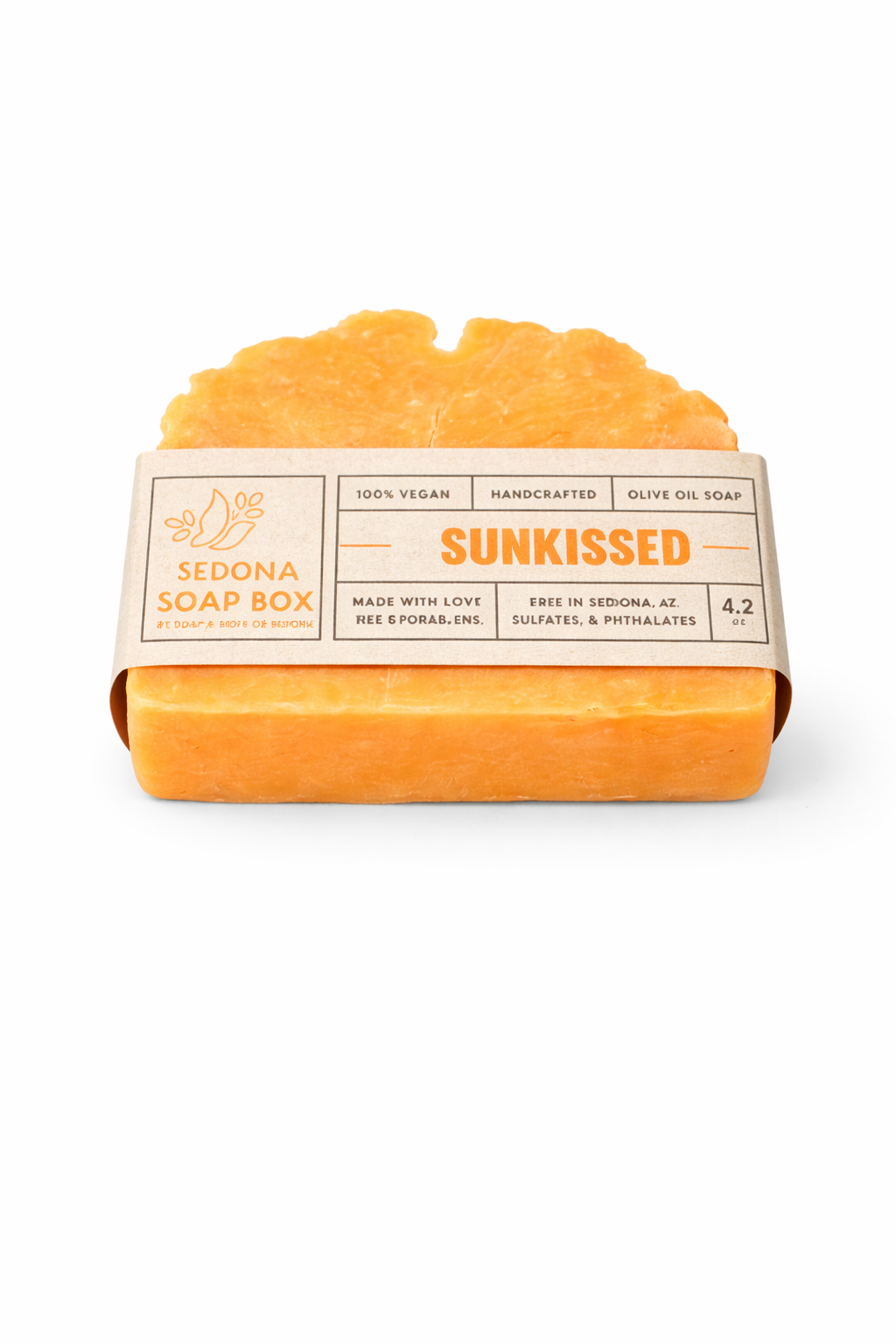 Bright, sunny, and bursting with citrus energy, Sunkissed smells like freshly peeled oranges with a splash of sparkling sweetness. Handcrafted in Sedona, Arizona, this vegan olive oil soap creates a creamy lather that leaves your skin feeling clean, refreshed, and uplifted.